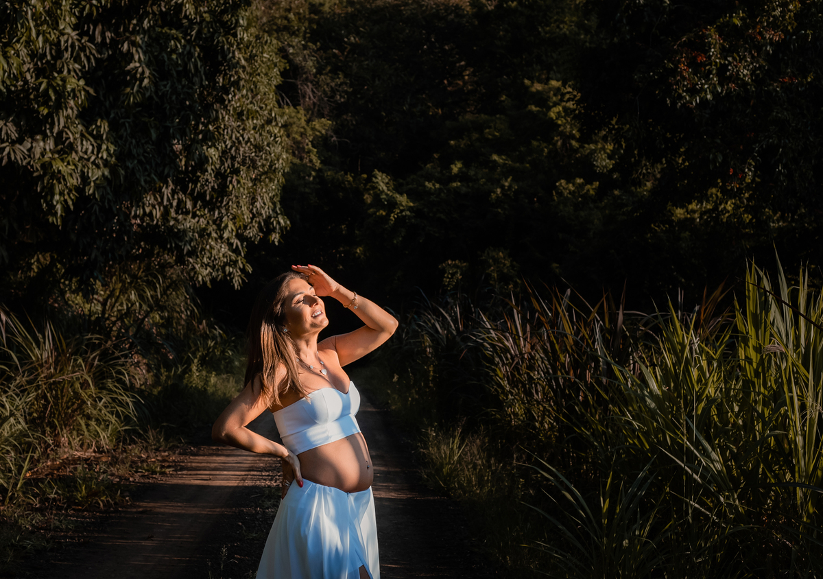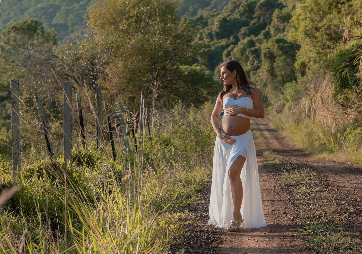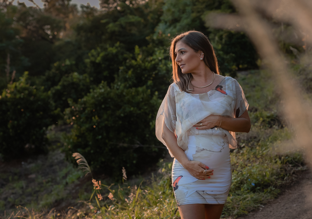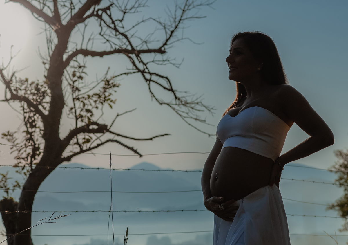 Fazer as fotos dessa gestante ao ar livre, durante o amanhecer foi uma escolha maravilhosa para criar um clima romântico e tranquilo nas fotos. A sessão de fotos foi uma experiência inesquecível e rendeu imagens incríveis para eternizar esse momento tão especial. Verificamos a previsão do tempo, adiamos, até esse dia que deu muito certo! Escolhemos este local de comum acordo, pq renderia vários cenários diferentes, é incomum e tem uma vista maravilhosa do amanhecer!